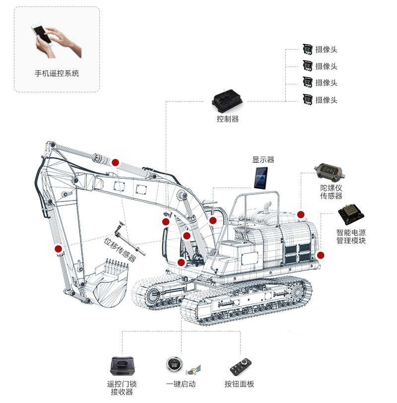 方案包括精确的挖掘控制,称重系统,以适应不同的市场需求,随着方案的不断发展,其革新性的技术将挖掘机从局部自动化提升到整机自动化,向着远距离操作和无人驾驶的趋势发展。